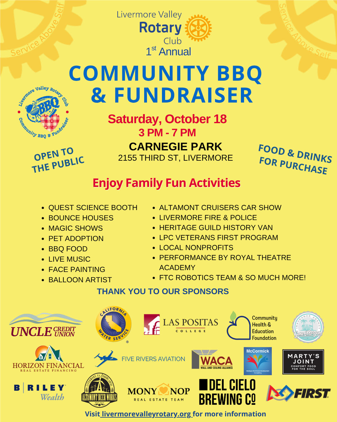 All proceeds from food and wine purchases as well as donations will be used to provide grants and fund service projects for local community members and nonprofit organizations. Twice annually, the Rotary Club of Livermore Valley awards Club Grants to organizations that serve youth, seniors, troubled, and disadvantaged members of our community. We also support youth leadership projects, scholarships, and global humanitarian projects.