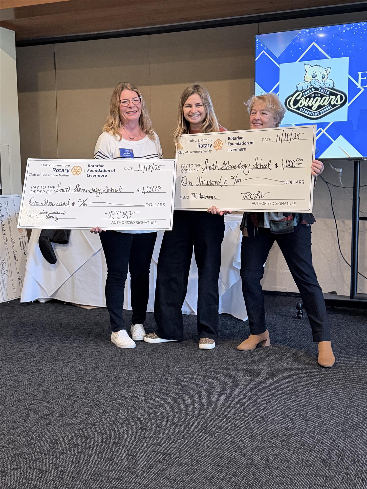Partnering with LVEF we awarded grants to Joe Michell (school foyer upgrades), Marylin Ave. (Science Camp), Smith (TK classroom upgrades and Social Emotional Library for TK-3 students), and Lawrence (Student Led Grants) Elementary Schools. LVEF contributed $1757. We are so grateful for their continued support!