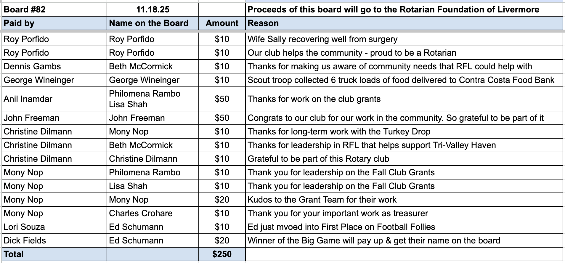 Philomena Rambo led us in celebrating the recipients of our Fall Club Grants, and Congratulations to all!